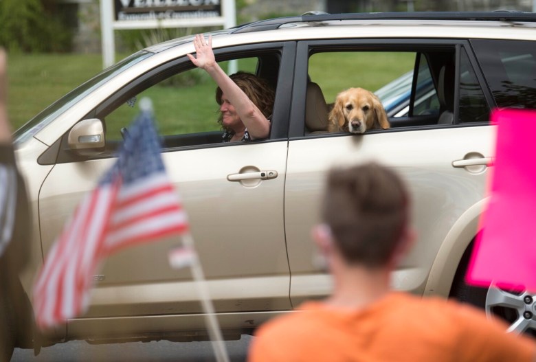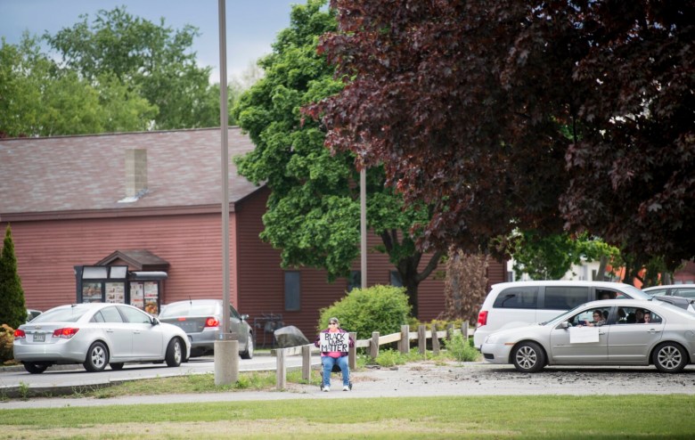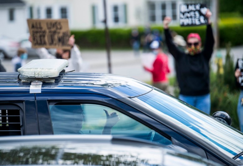 Heck was seen greeting protesters and handing out American flags. She made it clear that the protest was not anti-police, but, instead, anti-structural racism. A Waterville police officer could be seen giving a thumbs-up to demonstrators while driving by in a police cruiser Monday afternoon.