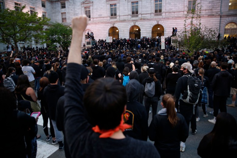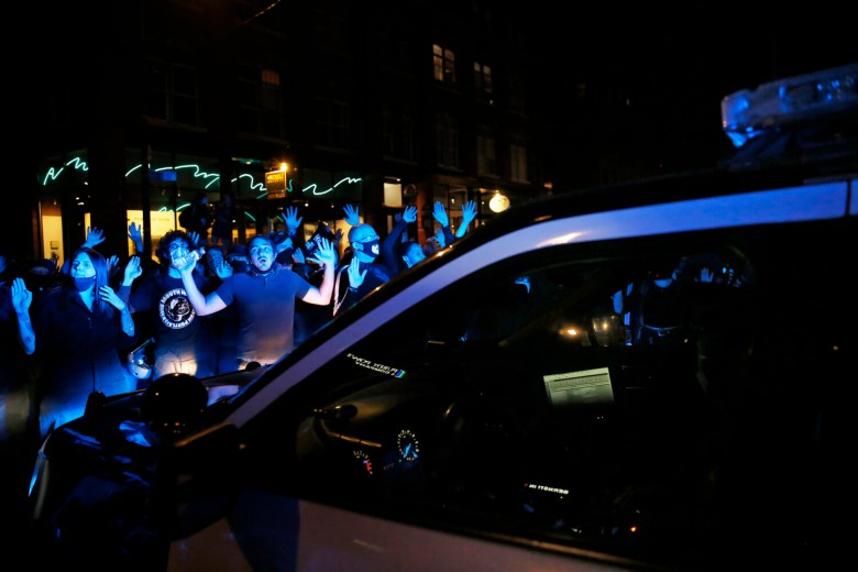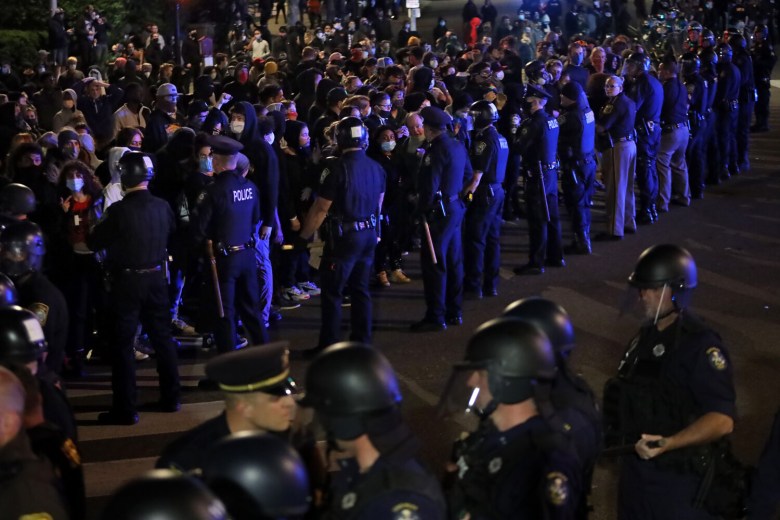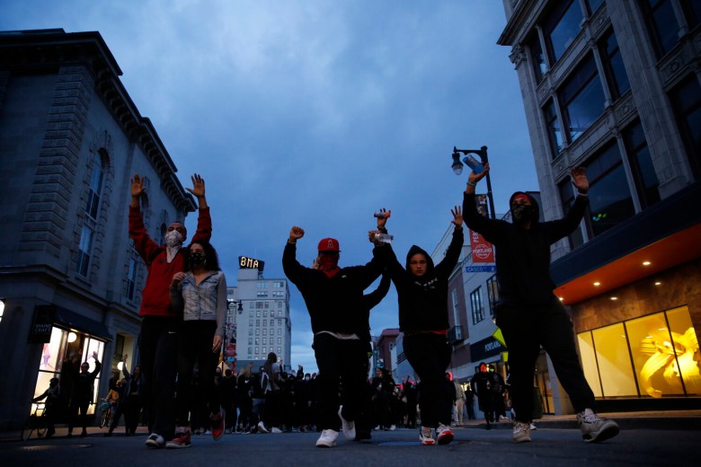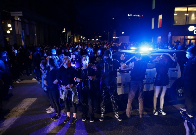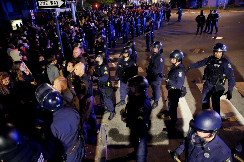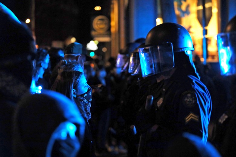 The city has already endured immense commercial damage from the unrest. On Monday, rioters got through the doors of the city’s flagship Macy’s store, famous for its Thanksgiving Day parade, and police later pulled at least two handcuffed men out of the store and put them into a van. By that time, most of the street was littered with broken glass.
