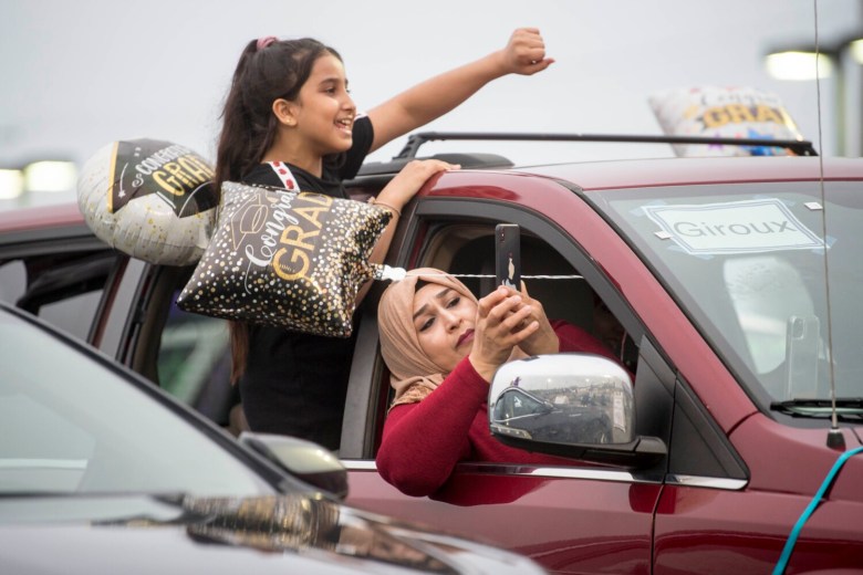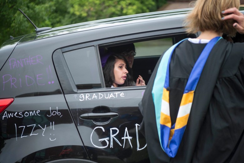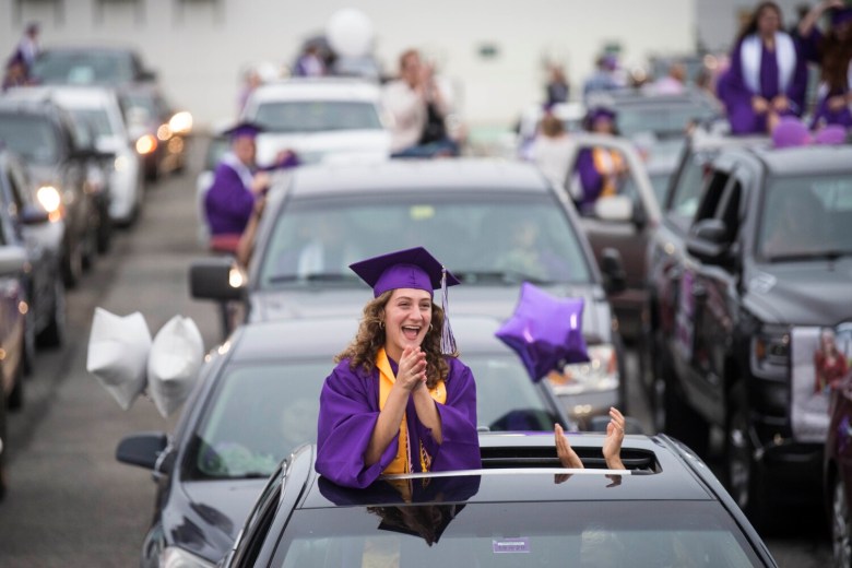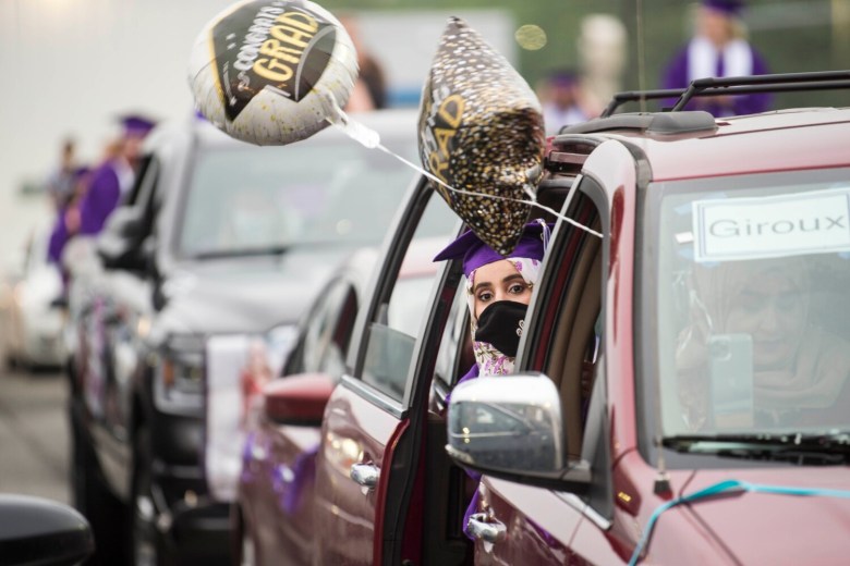 It was an unusual — but colorful and emotional — ceremony, with parents and other family members, along with friends and educators, cheering for the seniors by honking horns, clapping and shouting congratulations from inside cars and trucks.