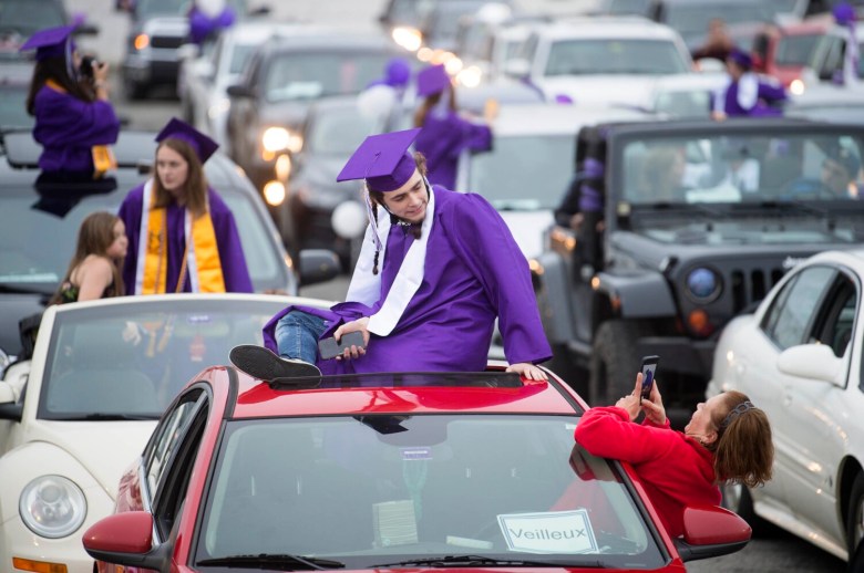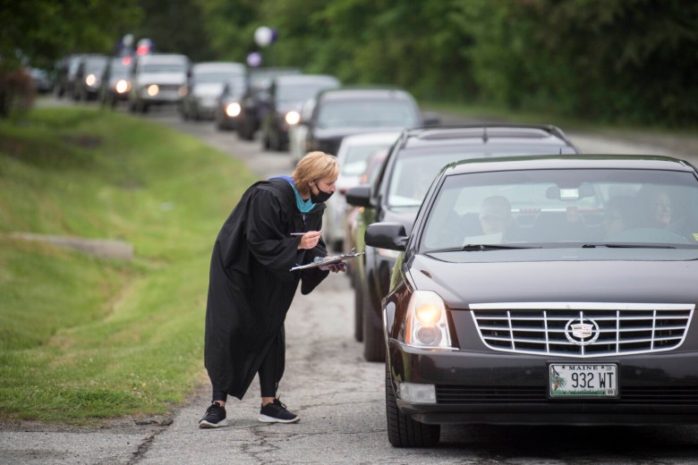 She said she felt the graduating class, school and educators had made the most of a difficult situation by planning the parade of vehicles and the graduation ceremony at Central Maine Motors Auto Group.