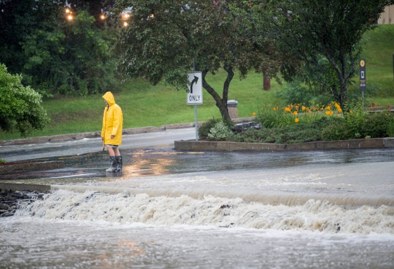The catch basins in the area were overwhelmed by the amount of rain and stream overflow, and it took some time for them to drain, Fongemie said. He said firefighters were knee-deep in water, trying to locate the catch basins. The Police Department also responded.