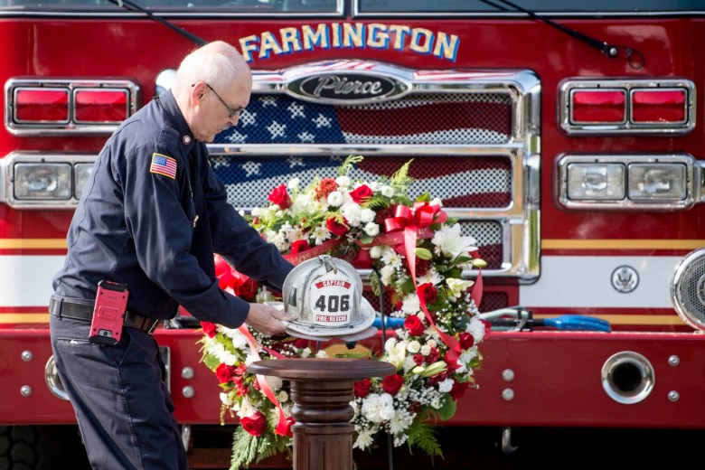 FARMINGTON — Fire Capt. Michael Bell’s helmet, emblazoned with No. 406, rested on a pedestal exactly one year after an explosion claimed his life.