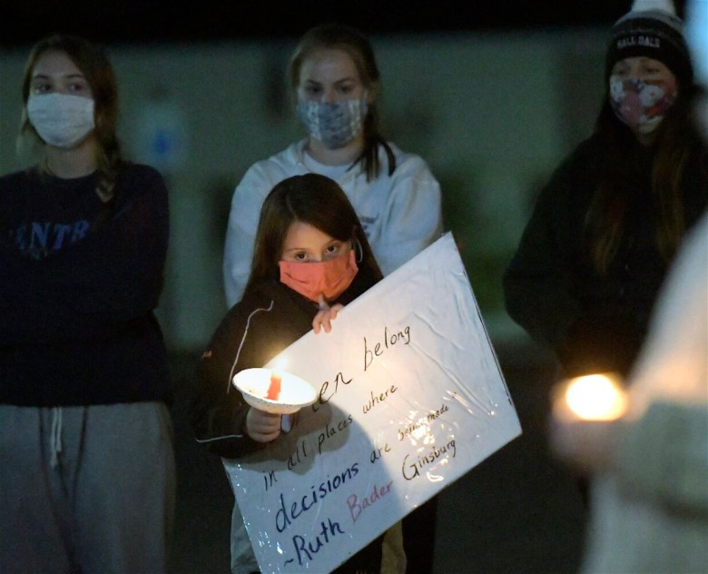 AUGUSTA — At the steps of the Maine State House in Augusta, when darkness began to shroud the grassy courtyard Monday night, two 10-year-old girls described the legacy of the U.S. Supreme Court Justice Ruth Bader Ginsburg.
