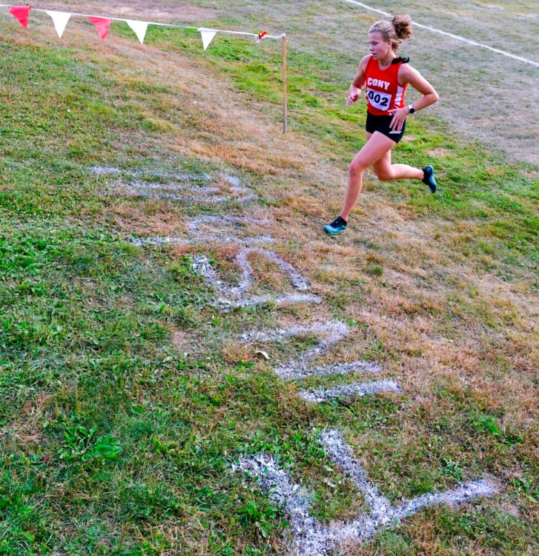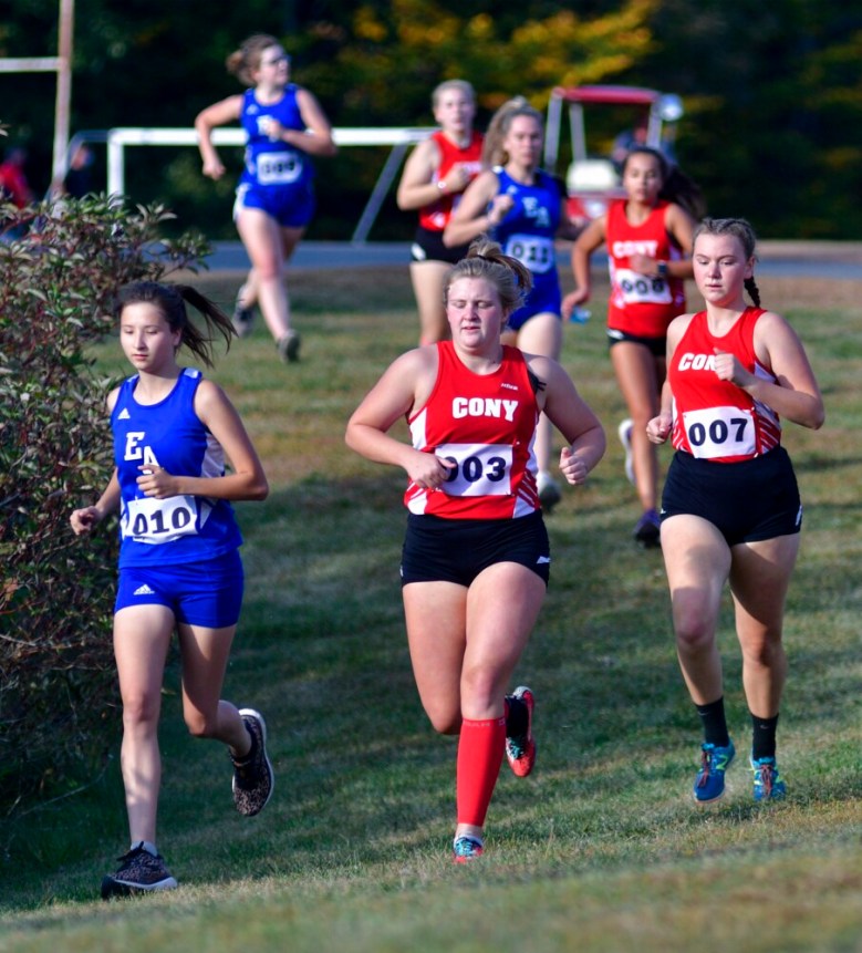 “The distancing and everything is definitely weird,” said Cony junior Grace Kirk, who won the girls race at 23:26.03. “The first thing I want to do after a race is hug everybody. But we can’t do that. I can’t even high-five my teammates. It’s really hard.”