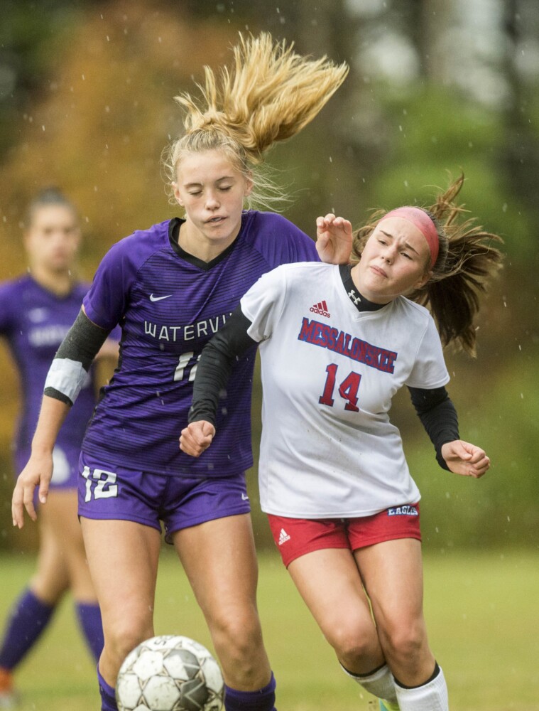 WATERVILLE — Just about nine minutes into Friday afternoon’s game, Paige St. Pierre lined up a free kick for the Waterville Senior High School girls soccer team. She faced no wall of Messalonskee defenders. Under rule modifications due to the Covid-19 pandemic, that’s a no-no. On the sidelines, Waterville head coach Mark Serdjenian and assistant coach Ed Worcester studied the field.