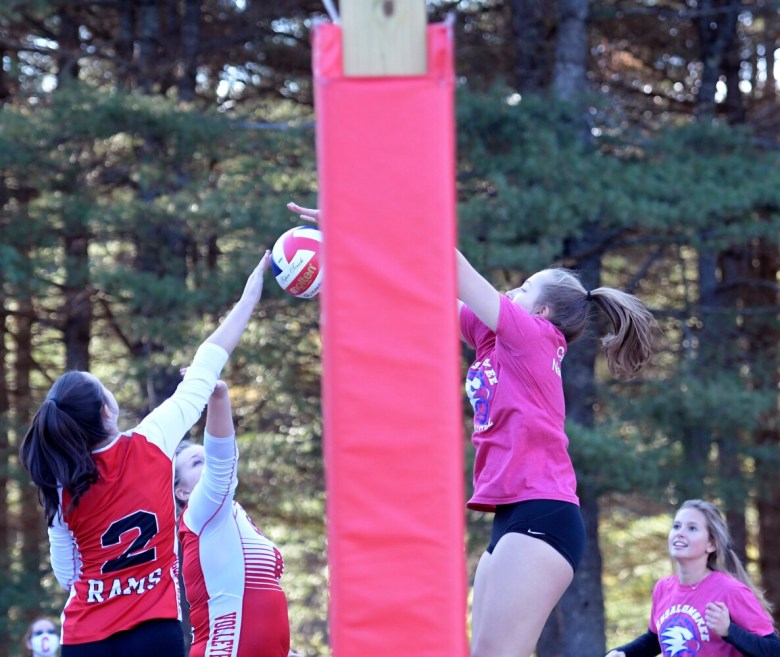 “Our net is a lot lower than it is normally, so we have to take into consideration that other (teams’) nets are going to be different than ours,” Cony senior Madison Hodgdon said. “Outside we don’t have a crank and inside we do, so it’s completely different, the net and how you can play off the net.”