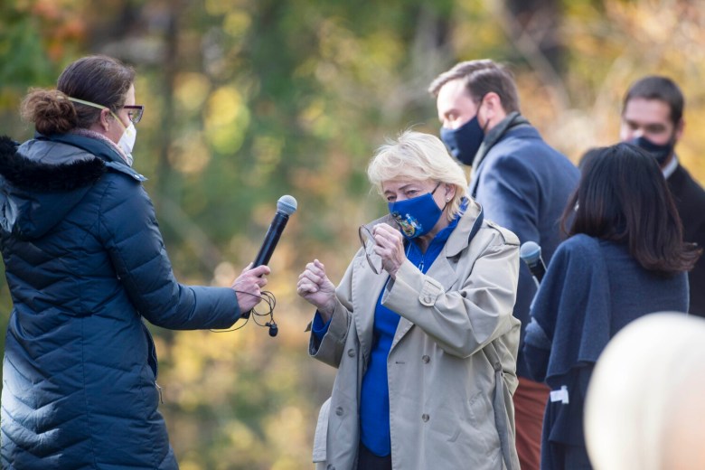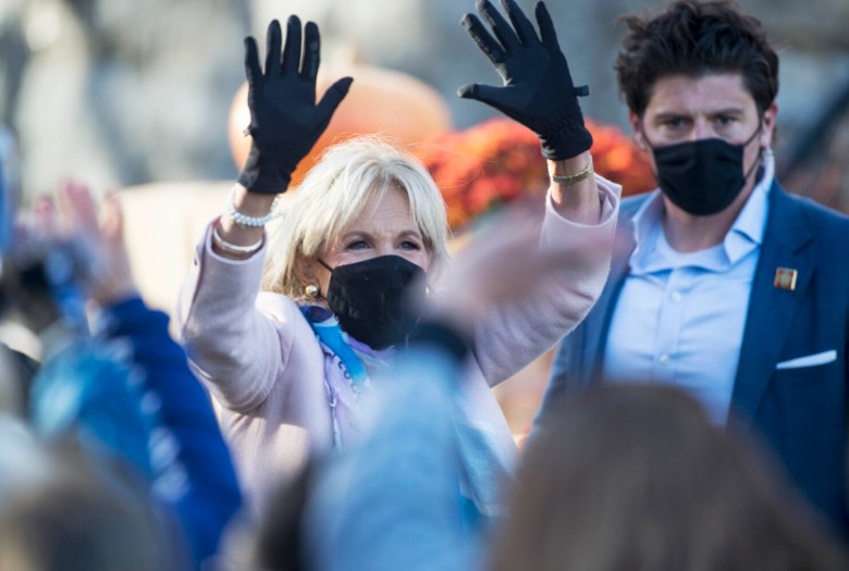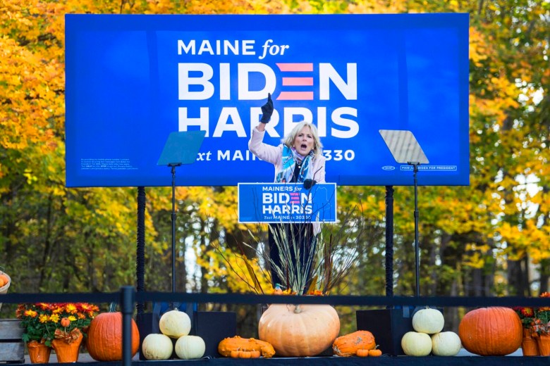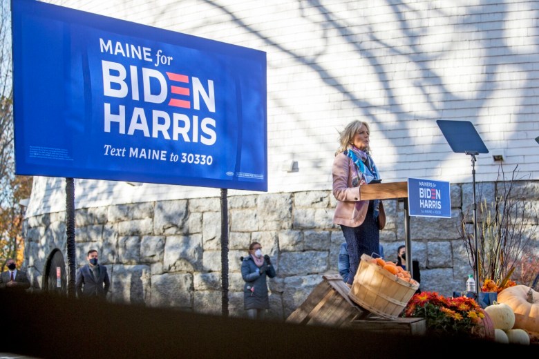 “With a blue Senate, Joe is going to be able to do so much more to get our country back on track, and Maine is critical,” Jill Biden told a crowd of about 100 masked and physically distanced individuals Tuesday afternoon outside the Thomas Hill Standpipe, a Bangor landmark. “That’s why you and Joe want Sara Gideon to be in the United States Senate. All eyes are on you, Maine.”
