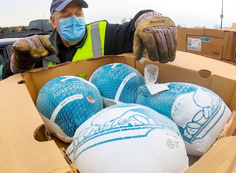 The food was donated by the U.S. Department of Agriculture, while the cost of the turkeys covered by Kennebec Savings Bank and the Elmina B. Sewall Foundation.
