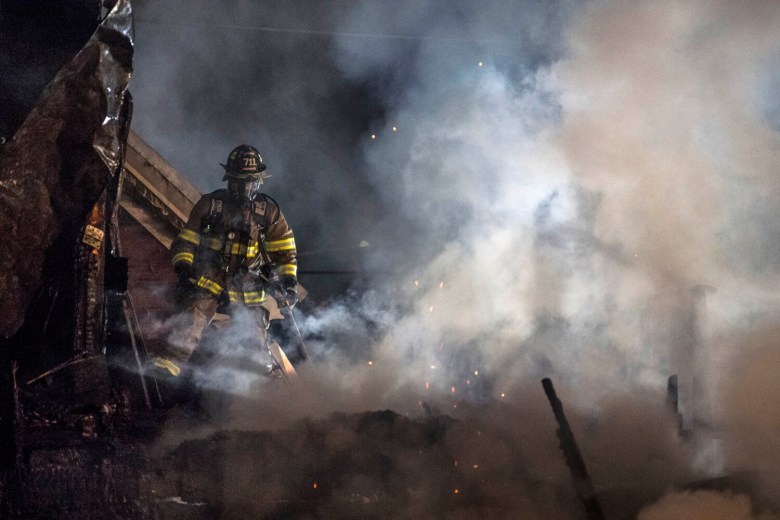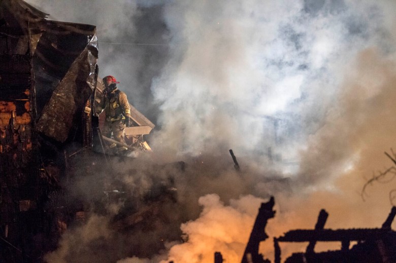 “When the on-duty crew got there, the downstairs tenant was trying his best to get as many Christmas gifts as he could …” he said. “He was throwing stuff out the front door into the road.”
