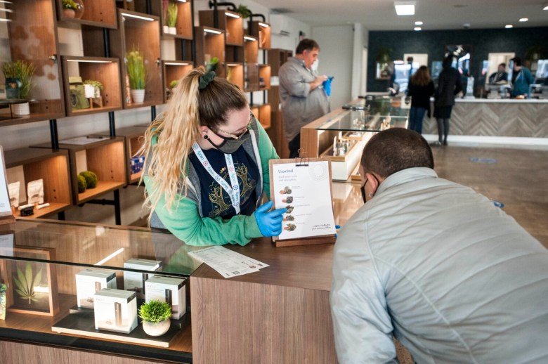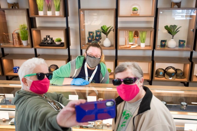 A line of about a dozen people formed outside the doors before the 10 a.m. opening Wednesday and each was checked for identification before entering to ensure each person was 21 or older. No other certification, such as a medical card, was required.