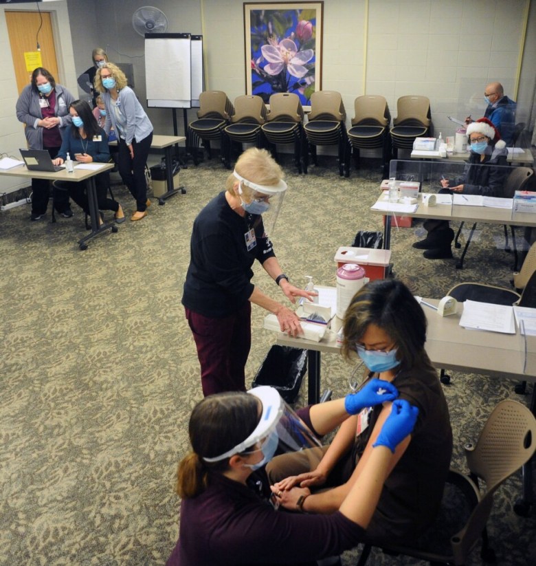 Caswell confirmed that the hospital had received all 500 doses in the shipment that was delivered on Tuesday; by the end of the day Wednesday, she expected about 60 staff members at the hospital to be vaccinated with others continuing throughout the week.