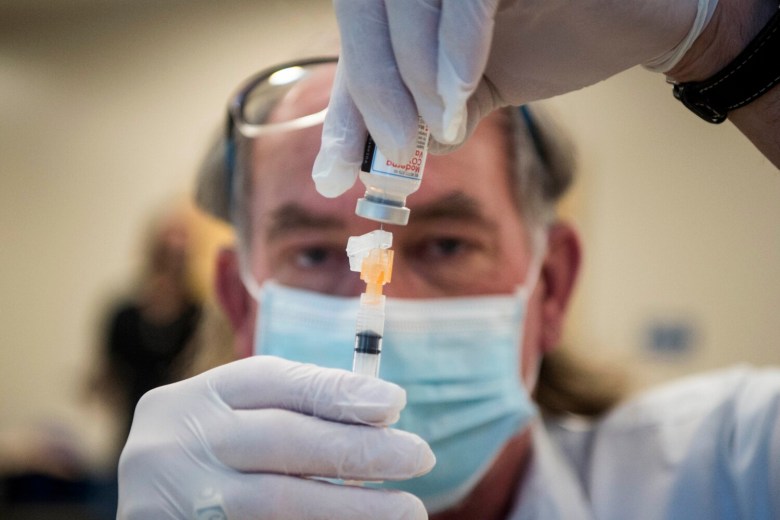 They started with Dr. Gina Gomez, as the vaccine was prepared by pharmacy director Lisa Caswell.