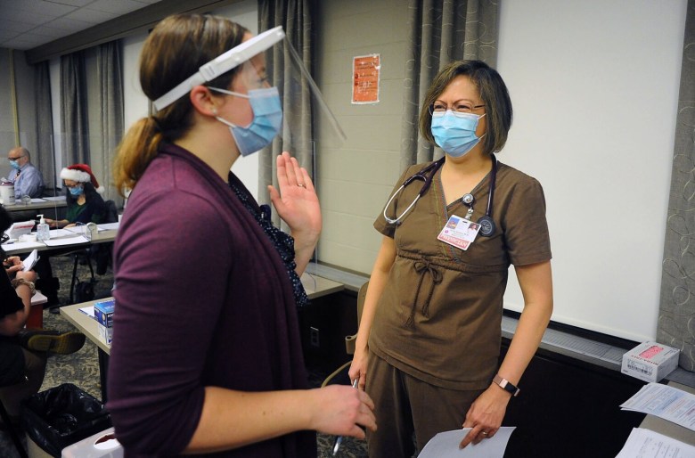 “This is a very exciting day for all of us because the vaccine brings hope,” Terri Vieira, president of the Waterville hospital, said Wednesday. “It marks a big boost in our efforts to combat COVID-19. We are hopeful that all staff who want the vaccine will be able to get it within the next month — depending on the availability of the vaccine.”