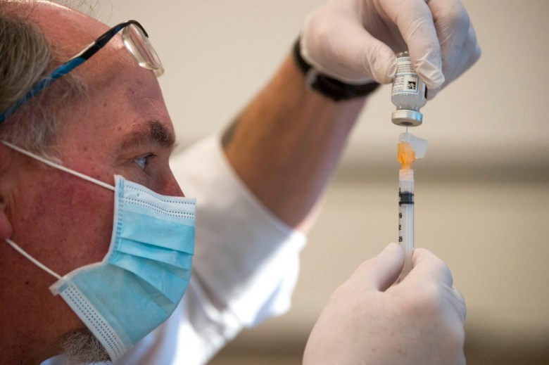 They started with Dr. Gina Gomez, as the vaccine was prepared by pharmacy director Lisa Caswell.