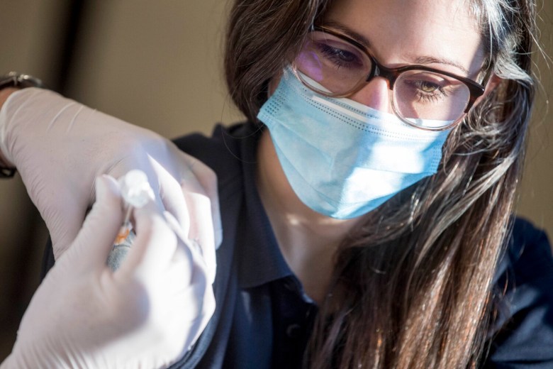 Gomez said she was excited to be receiving the first of two doses of the Moderna vaccine; she was hopeful that she will eventually be able to travel to see her family in the Philippines, whom she has not seen in nearly a year.