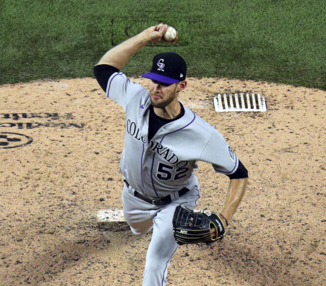 The former Red Sox pitcher earns a victory in relief for the Colorado Rockies in his first major league game since 2013.