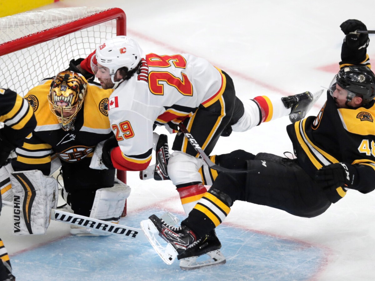 Two quick second-period goals help Flames top Bruins, 5-2