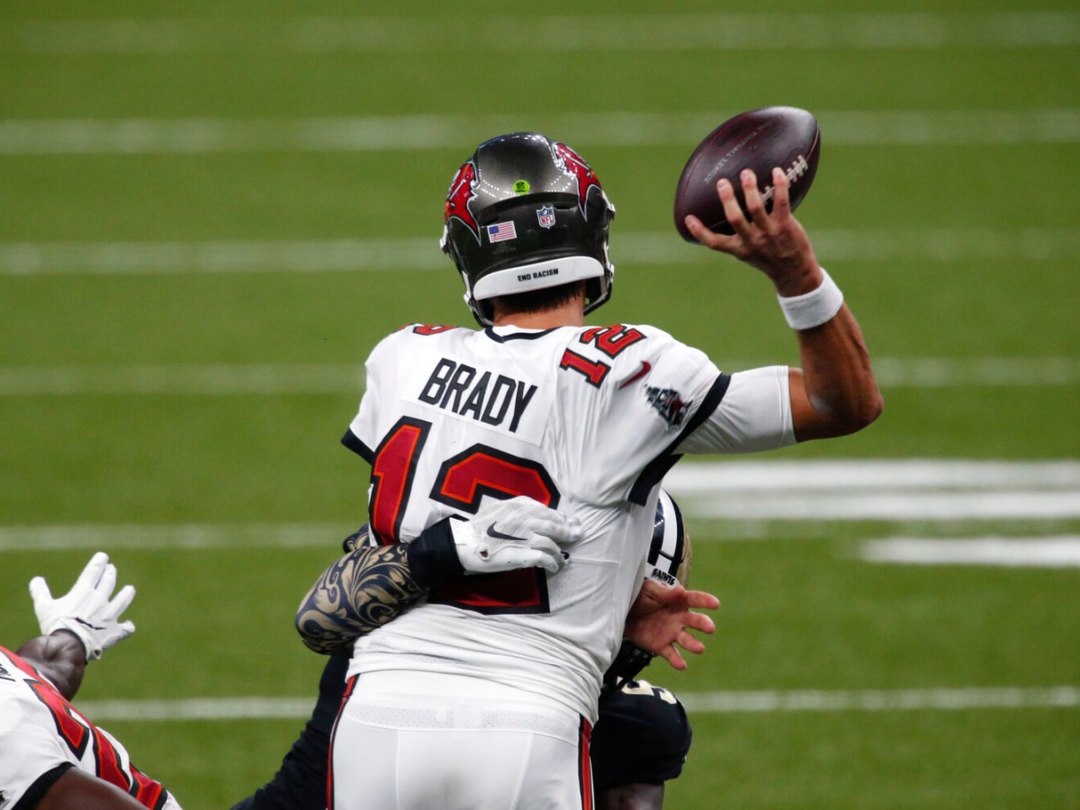 Brady throws two TDs, two picks in debut with Tampa Bay