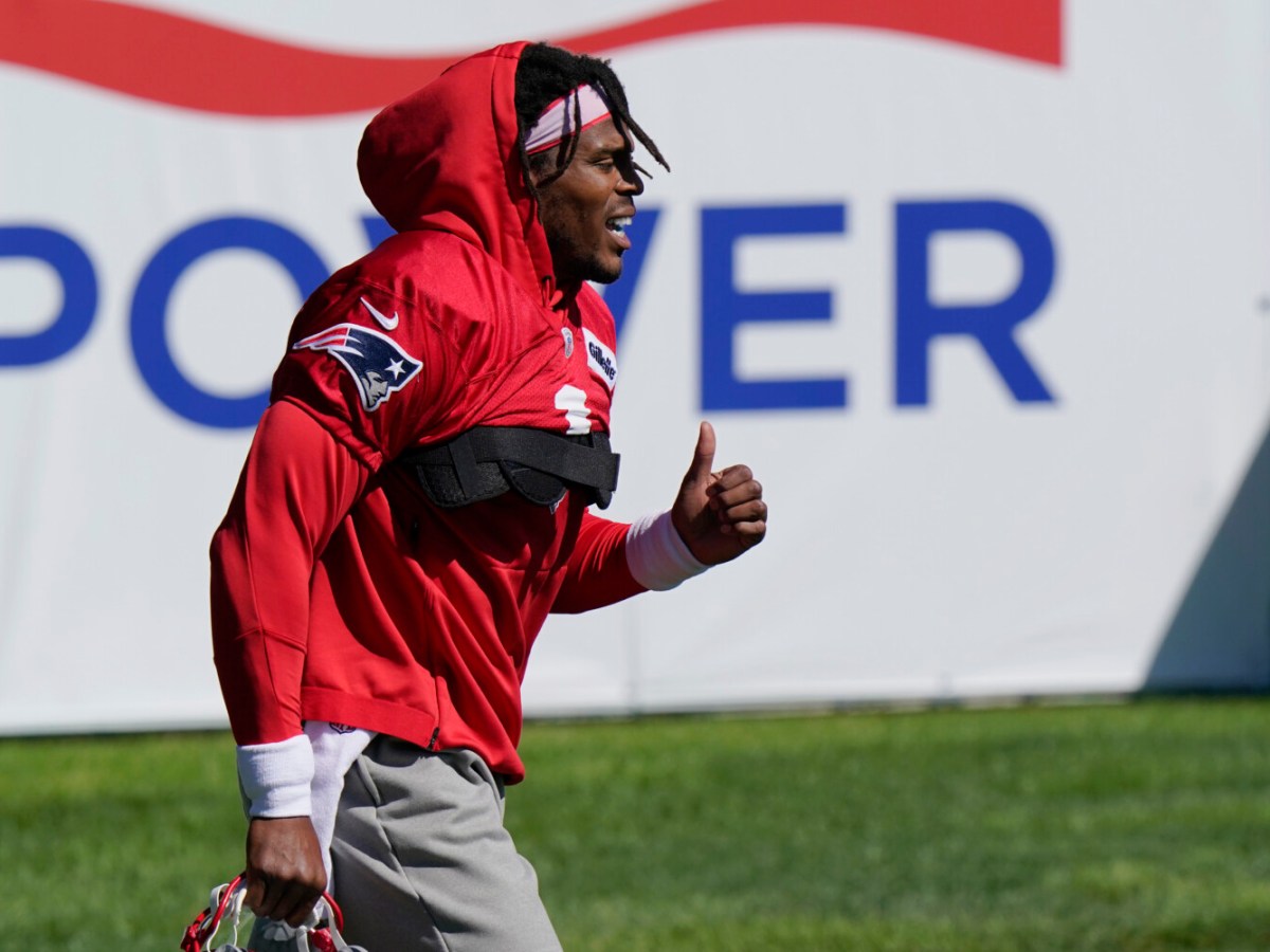Cam Newton, battling to become New England’s starting QB, is out, while running back Lamar Miller practices for the first time.