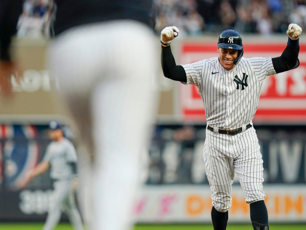 Aaron Judge drives in the winning run in the bottom of the ninth as New York clinches a playoff spot and