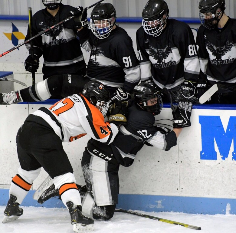 Peter Sack scored a pair of first-half goals for Kennebec and the RiverHawks held off a late charge from the Tigers to squeak out a 3-2 win at the Camden National Bank Ice Vault. Goalie Adam Sirois made 16 saves as Kennebec improved to 5-2-0 this season. It was the second win this season for Kennebec over Gardiner, with the RiverHawks having come back from three goals down the first time the two teams met to win 6-4.
