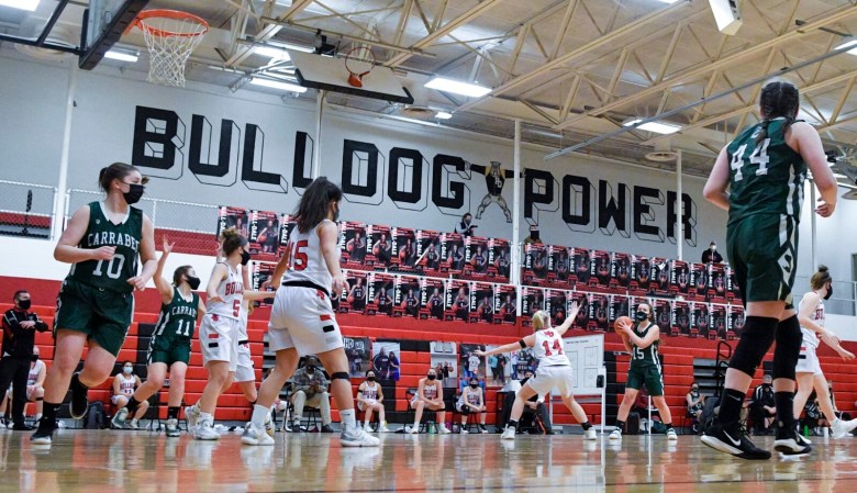 It did. It put the Hall-Dale girls basketball team ahead of Carrabec 50-47 with 2:40 to play. The Bulldogs didn’t trail again, en route to pulling out a 62-54 victory Thursday night in Farmingdale.