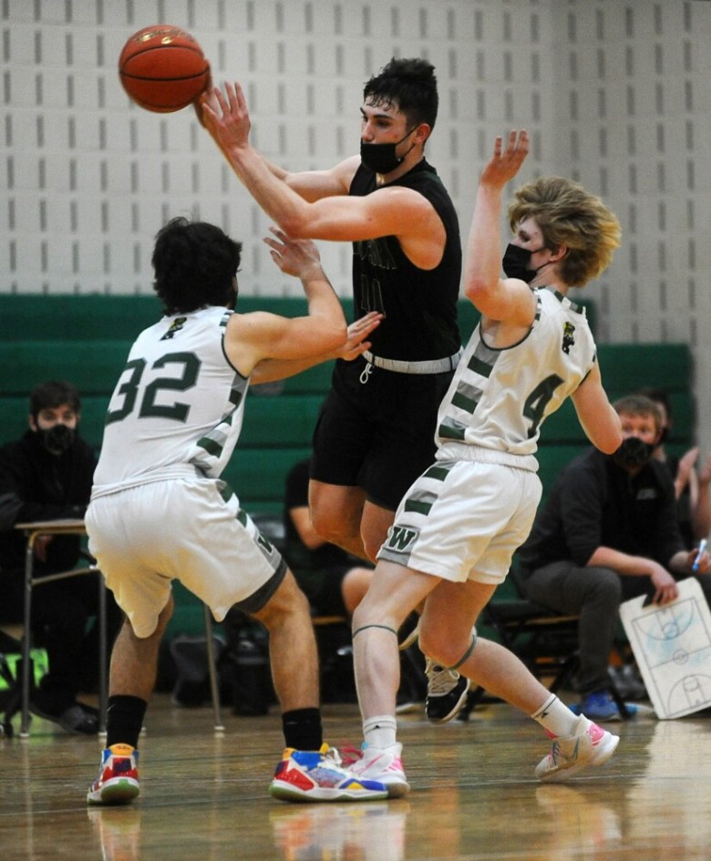 Jordan Blanche made a trio of 3s in the second quarter for Spruce Mountain, accounting for all of his nine points. The last of those three treys gave Spruce a 22-21 lead with 1:45 to play before halftime.