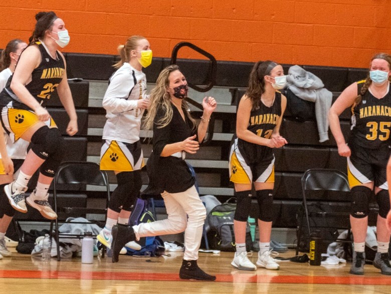 The momentum continued to grow two possessions later, when Gruber knocked down a 3-pointer that prompted a Maranacook timeout with 23-11 with 4:38 to go in the quarter. The run eventually reached 18 straight points, as Megan Gallagher (11 points), yet another sophomore, hit a three and Gruber had another basket to put the Black Bears — for the moment — on their heels.
