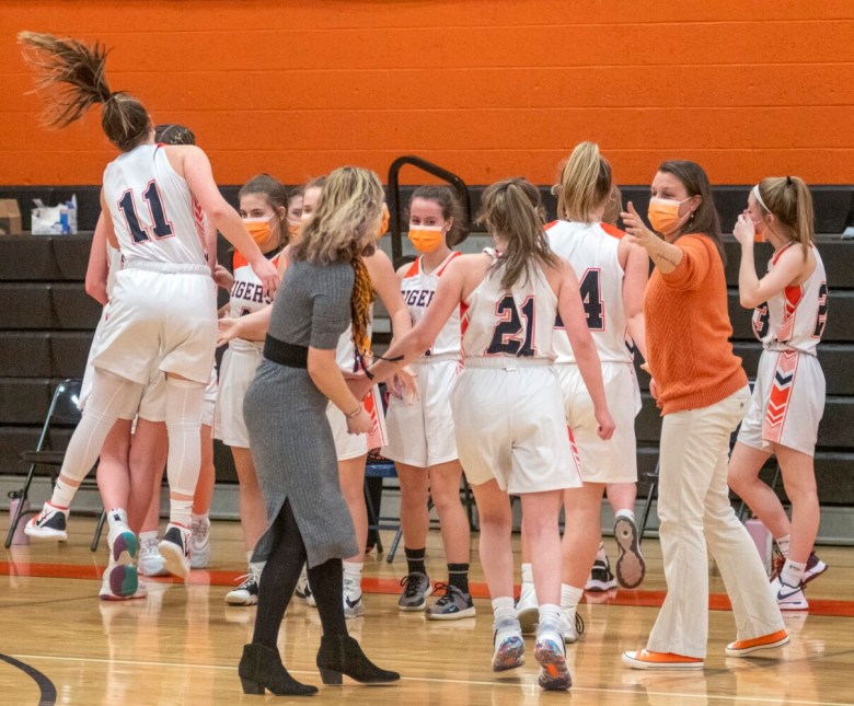 Gruber and the Tigers did, with Gallagher hitting a three at the end of the third quarter and Kylee Nichols — another sophomore — putting in a layup that pushed the lead to 12 in the first minute of the fourth. Still, the Black Bears weren’t done, cutting the lead to five on three occasions — a Grace Dwyer 3-point play, a Drillen steal and score, and finally two free throws from Dwyer (eight points) with 2:04 to go.
