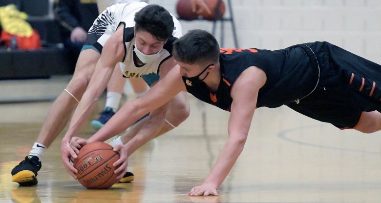 The lead was 46-30 at halftime and it only grew from there, eventually reaching 30 when Eljas Bergdahl stole the ball and sent it upcourt to McClure for a dunk that made it 77-47 with 5:25 to play. The RiverHawks couldn’t steer the game away from the Black Bears’ style. Maranacook attacked the basket and earned trip after trip to the line, and its pressure flustered Skowhegan ball handlers and often prevented them from working the ball in to the trio of Collin and Kyle LePage and Adam Savage. Maranacook had 14 steals, 11 in the first half alone.