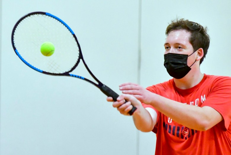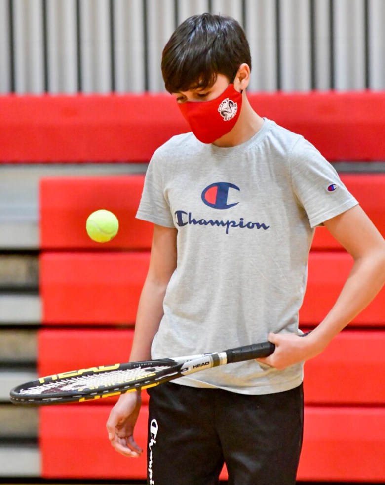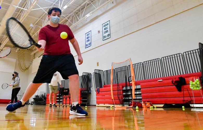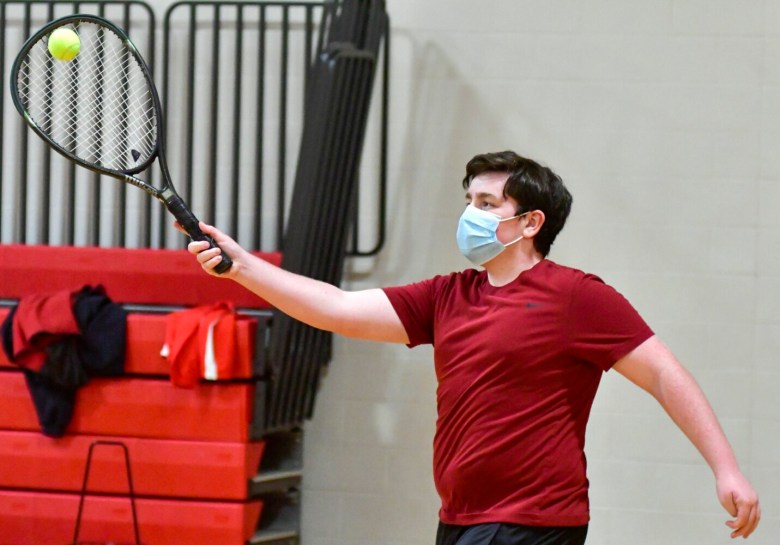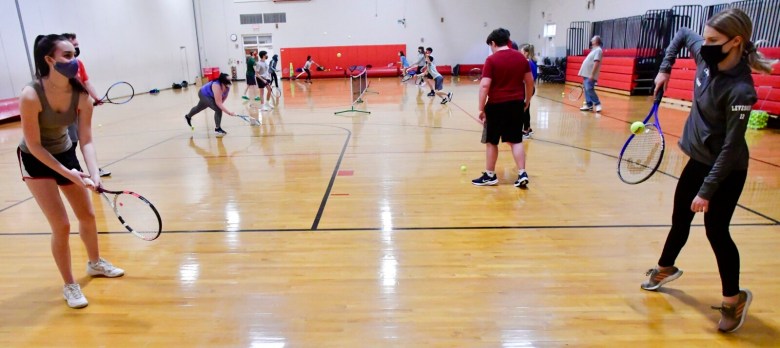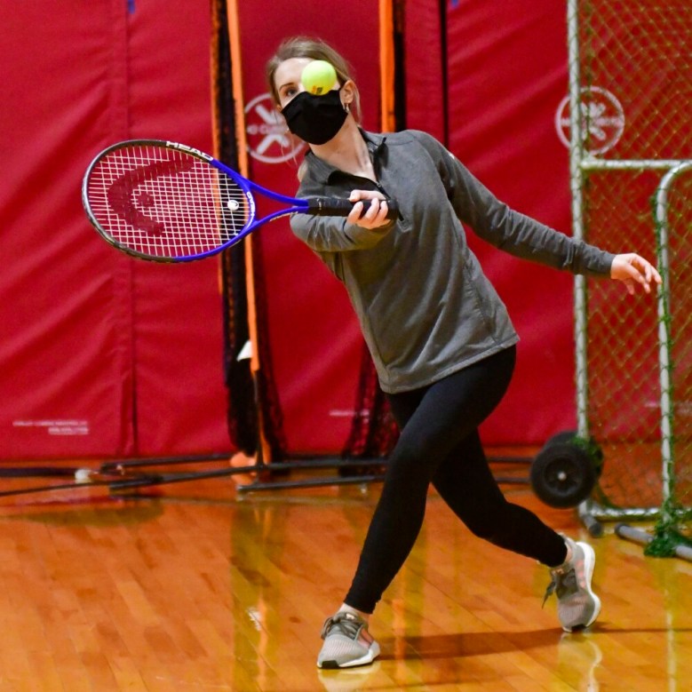 “I know everybody’s been really looking forward to it for a while, just to get out and be a team again,” said Mandy Cooper, a senior and the top singles player on the Cony girls team. “It’s even more so this year, like ‘Thank God we’re back.’ … Everybody’s split into cohorts. I see people here that I don’t get to see at school.”