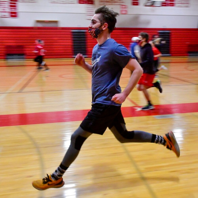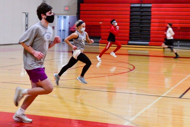 Cony track and field athletes run in the gym during practice Monday in Augusta. Joe Phelan/Kennebec Journal Buy this Photo