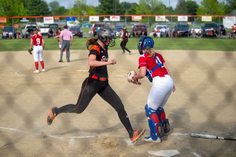 SKOWHEGAN — Skowhegan senior Mariah Whittemore briefly tried to make the case for instant replay in high school softball after her team’s 7-3 win over Messalonskee on Friday. In the first inning, Whittemore hit a bomb to center field that looked like it might clear Skowhegan’s ridiculously high outfield wall. It’s an 8-foot high chain link devourer of home runs, and Whittemore thought her blast cleared the wall and ricocheted off the post supporting the scoreboard and back onto the field.