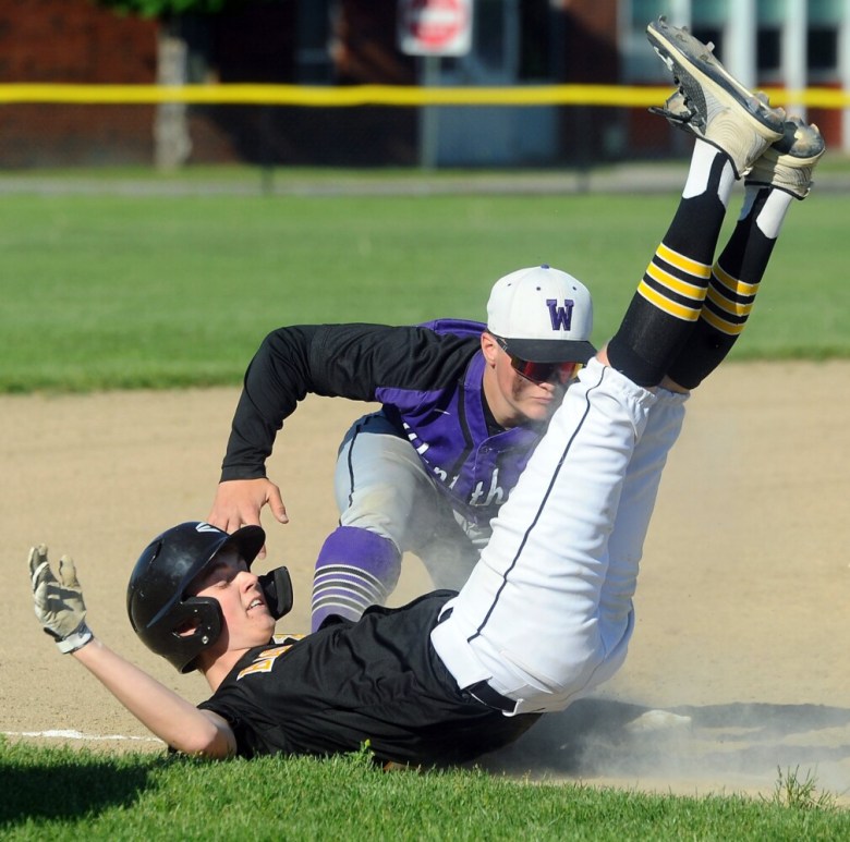 WATERVILLE — Sam Lloyd had the kind of Senior Day any baseball player would want. The Waterville Senior High School senior had a pair of hits, including a home run. Lloyd drove in three runs, including the game-tying run in the bottom of the seventh inning. Pitching three innings of relief, Lloyd earned the win in the Purple Panthers 8-7 come-from-behind victory over Maranacook.