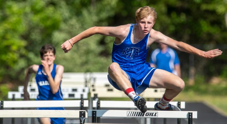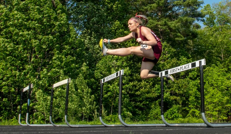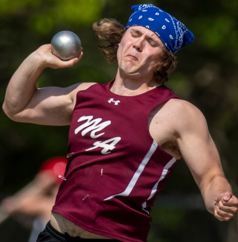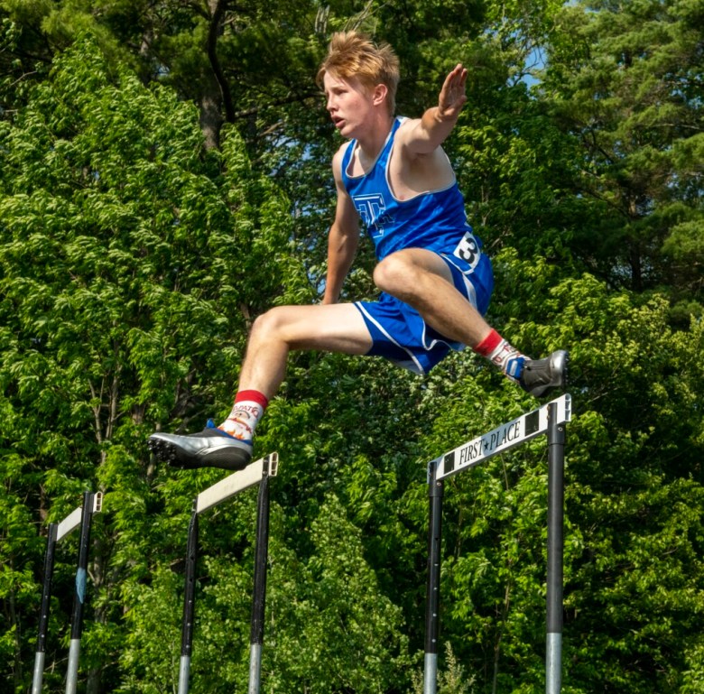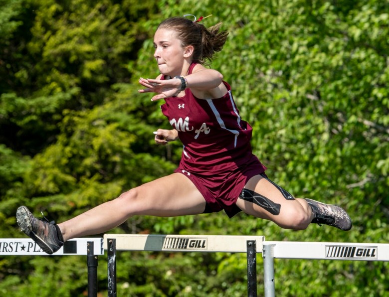 The Bulldogs withstood a challenge from Mt. Abram, which got first-place finishes from Cameron Walters (110 hurdles, 20.06; 300 hurdles, 48.35) and Cade Tooker (javelin, 150-3) and the 4×100 relay team. Monmouth had a pair of multiple winners in Brosnan Comeau, who braved the high temperatures to win the 800 (2:10.99), 1,600 (4:59.98) and 3,200 (11:22.67), and Jared Martin, who took the shot put (40-11) and discus (126-10).