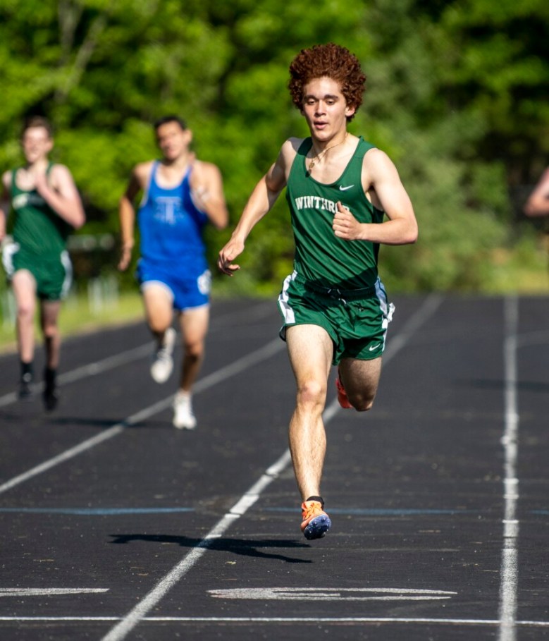 Winthrop’s James Cognata won the 200 (23.89) and 400 (55.3) while also helping the 4×400 and 4×800 teams win, while Madison’s Cameron Cobb won the high jump at 6-2.