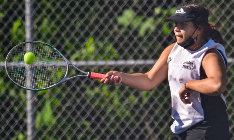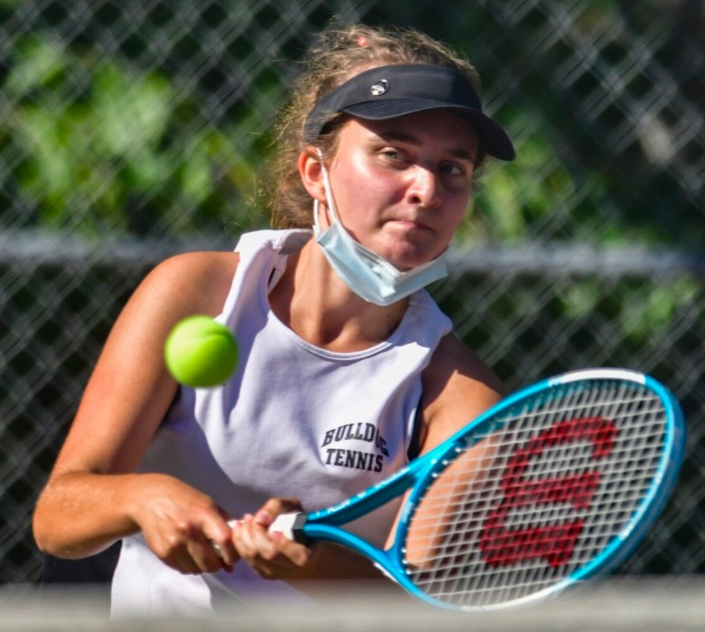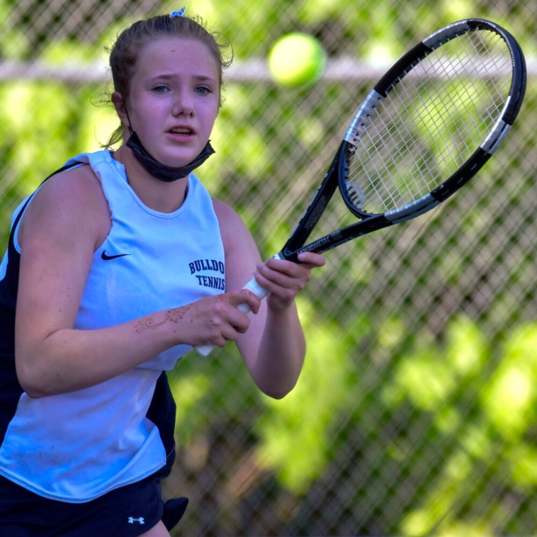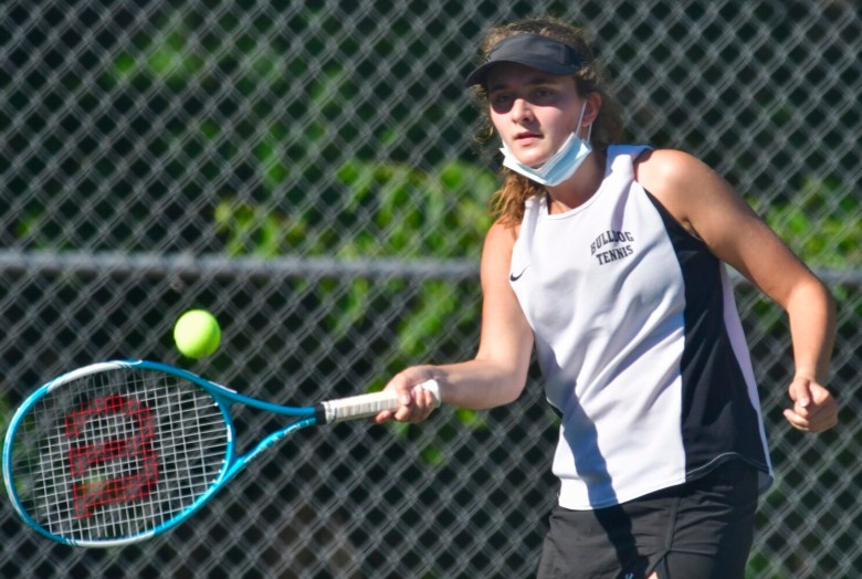 Hall-Dale also got a 6-1, 6-3 win at third singles from Ella Schaab over Leah Gilbert, and a 3-6, 7-6 (6), 6-0 win at first doubles from Moira O’Connor and Jenna Lee over Hannah Coates and Kaila Godby. The doubles victory from O’Connor and Lee, both of whom are first-year players, tilted the match in Hall-Dale’s favor, as Spruce Mountain was a tiebreaker away from sweeping doubles, taking a 2-1 lead and putting pressure on Millay and Lynch at the top singles matches.