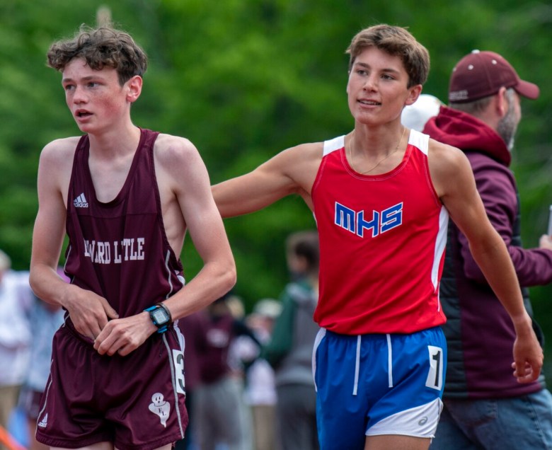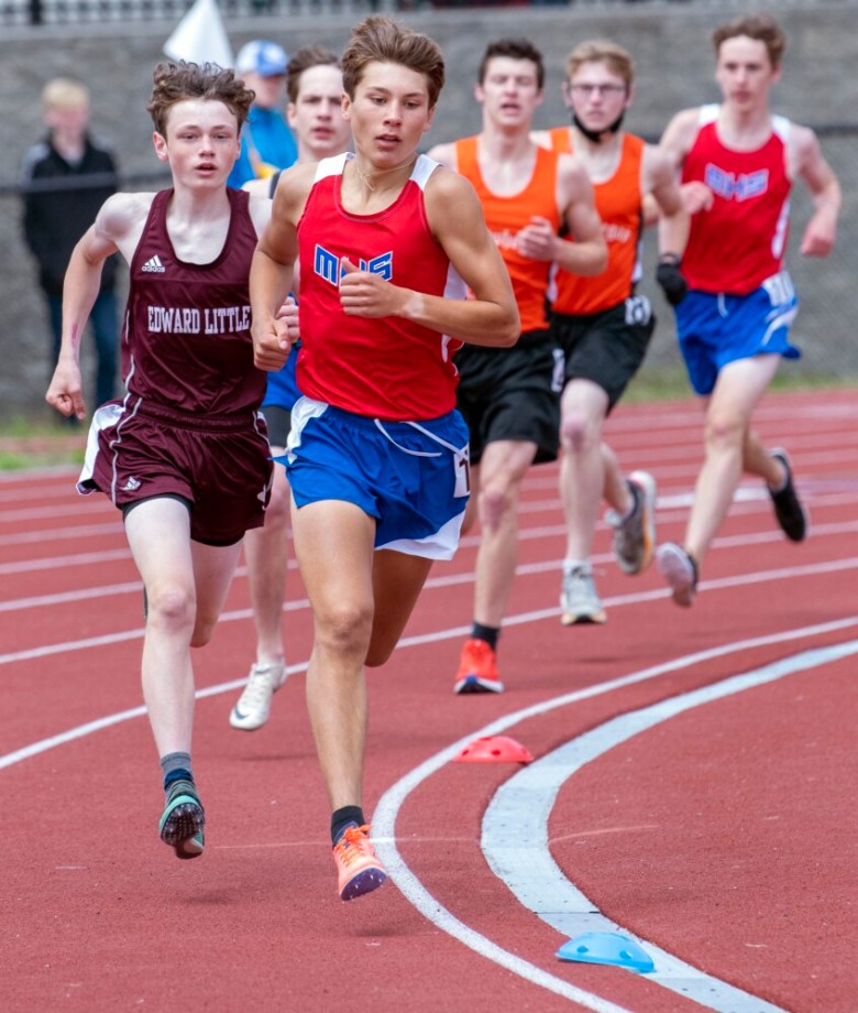 Messalonskee finished fourth in both boys (69 points) and girls (52). Dylan Flewelling earned wins in the 3,200 and in the 1,600, where he needed a strong finishing kick to break away from Edward Little’s Owen Vincent.