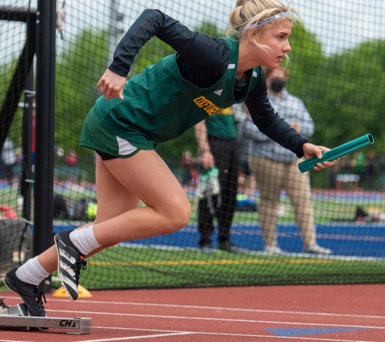 Skowhegan won the boys 4×100 relay (46.42), with the team of Zach White, Aiden Belanger, Billy Albertson and Leland Malyk.