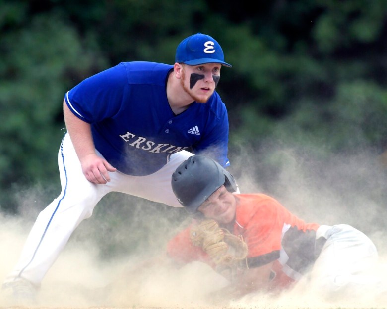 Erskine began the rally with a lead-off single to right from Riley Sullivan, who had also relieved Hotham and escaped a bases-loaded jam in the top of the seventh. Holden McKenney bunted him to second, and a wild throw to try to get pinch-runner Joe Lemelin put runners at the corners. Sam Boynton followed with a grounder to short that forced McKenney but scored Lemelin to tie the game, and after Perfetto reached on a fielder’s choice and stole second, Lloyd rapped a grounder up the middle that kicked off second base and allowed Perfetto to score easily.