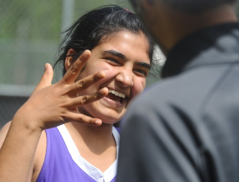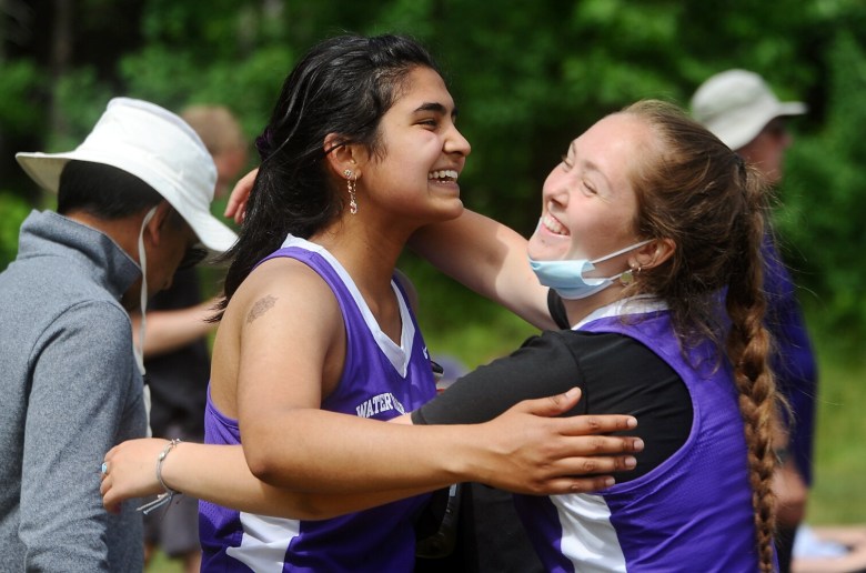 The three singles matches were much closer, with Waterville winning each. Second singles player Amna Sheikh clinched the win for the Panthers with a 7-6 (7-3), 6-2 victory over Livia Bouchard. Sheikh fell behind early in the first set, before rallying. The afternoon sun made the Hampden Academy courts hot, and Sheikh said the support of her teammates and members of the boys team, who won the regional title earlier in the day, helped her overcome a slow start.