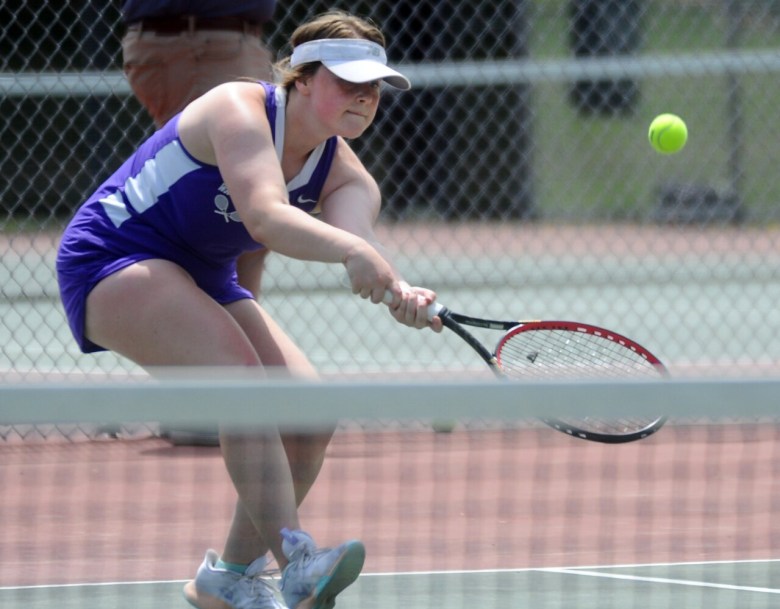 At first singles, Waterville’s Inga Zimba took two close sets over Sage Dubay, winning 7-5, 7-6 (7-0).