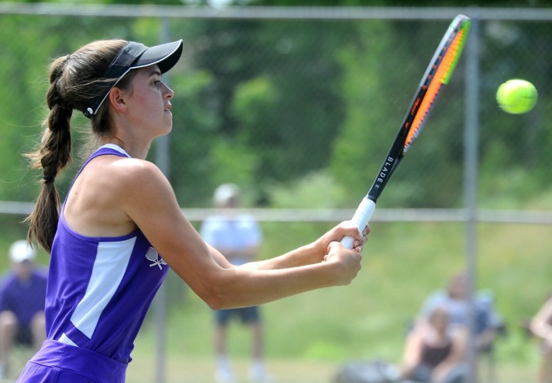 HAMPDEN — Sarah McNeil never felt any pressure to win her match in the Class B North girls tennis championship Thursday afernoon. Waterville’s No. 3 singes player, McNeil figured even if she lost, her teammates would win.