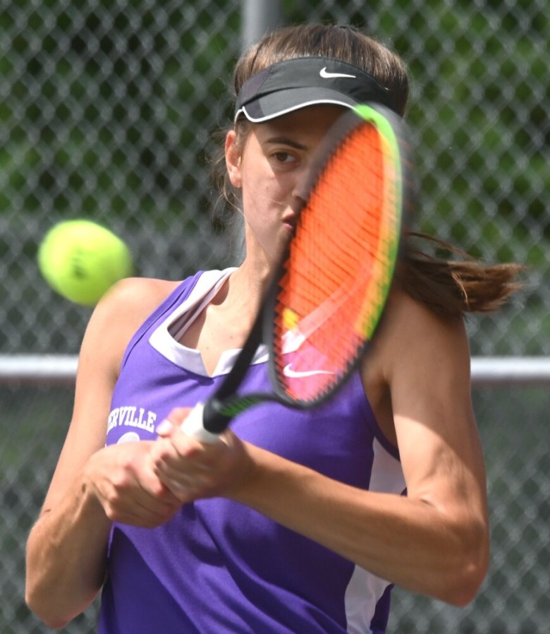 The Panthers quickly took a 2-0 lead, with easy victories in both doubles matches. At first doubles, Keira Gilman and Karin Zimba beat Mia Theriault and Naomi Cote, 6-0, 6-0. In second doubles, Hannah Hubbard and Miranda Troy took a 6-0, 6-1 win over Jayden Fournier and Kallee Parent.