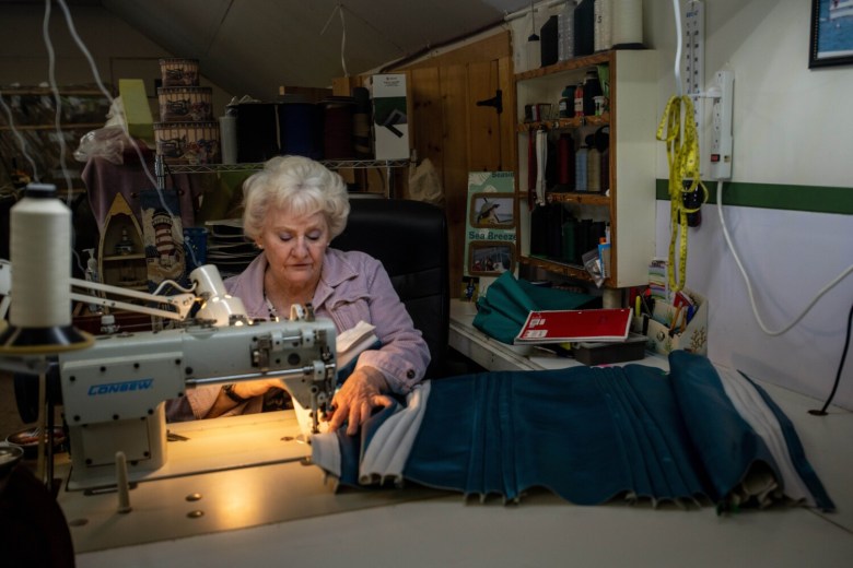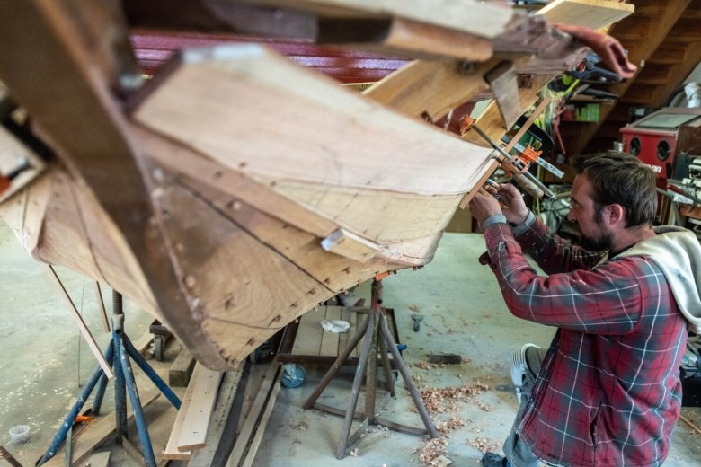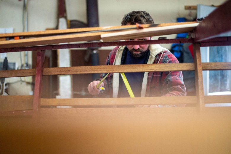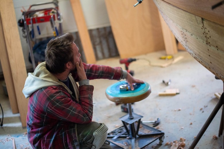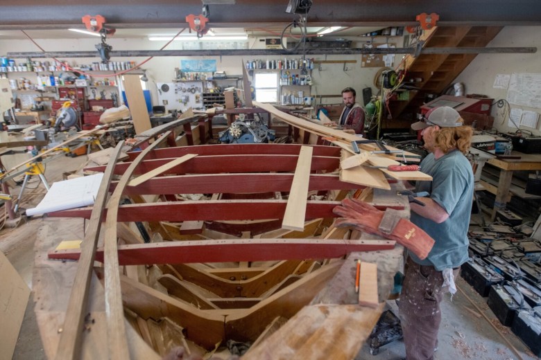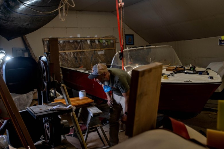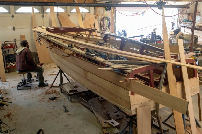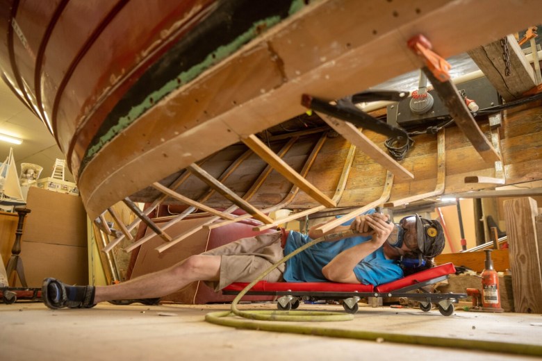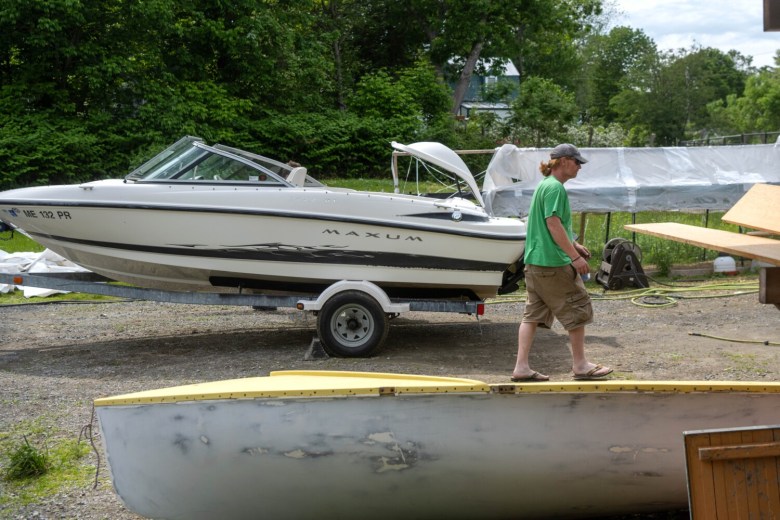 His property extends behind the houses on Hulin Road. Grant rents the house and garage next door to his for extra storage, and new this summer, two Brightside Marine employees live there. To walk through Grant’s property is to see a rare type of shop for the state of Maine. Some of the boats look ready to launch, while others near the back of his property need more work. Some of those have been there for years with an unclear completion timeline.