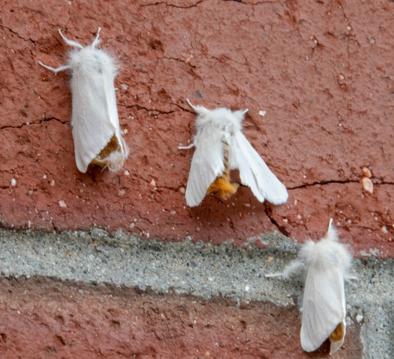 The moths do not carry the same toxic hairs the caterpillars do on their bodies, their shed skins or pupal cocoons, Schmeelk said, and they pose no health risk to humans.