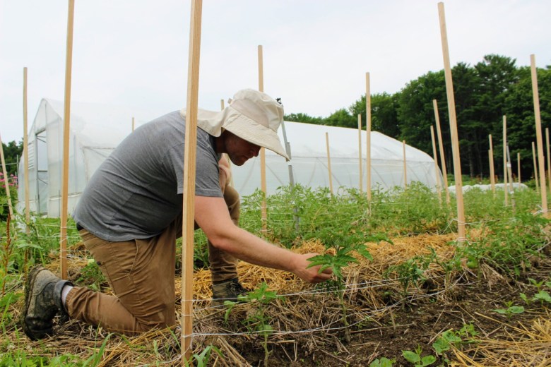 Others at the farm on Tuesday included two Bowdoin College summer interns, Tucker Ellis and Paul Wang, who divide time on the farm between doing research and work.