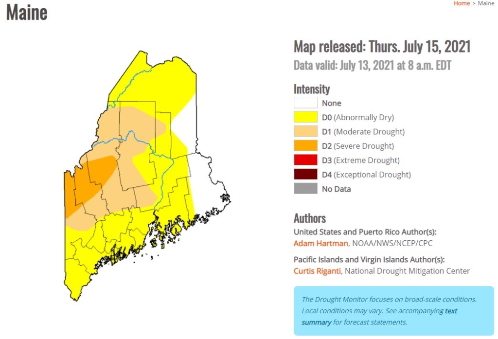 Meanwhile, the Maine CDC Drinking Water Program is receiving requests for assistance from public water systems statewide on drought preparedness and response.