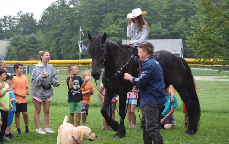 He adopted 10 municipalities in Maine and New Hampshire, including Bath, where he partners with local law enforcement to visit hospitals, youth centers, retirement homes and schools, among other local organizations. Along for the visits are his Friesian horse, Hercules and yellow lab, Molly. The program is free.