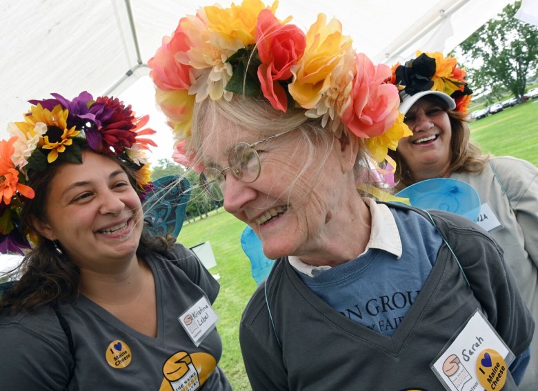 Cheerfulness prevailed. Live music kept the crowd entertained, and volunteers dressed as “cheese fairies” handed out complimentary cheese samples to attendees — provided in a lunch bag imprinted with the Maine Cheese Guild logo.